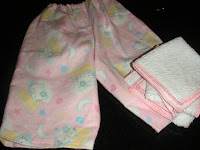 I had great hopes that today would be productive! Hubby was going to watch keira ‘all afternoon’… well I got 1 hour to finish these pj pants and make lots of facewashers/nappy soakers on my overlocker…I think these will make great pressies for all our friends having babies this May!