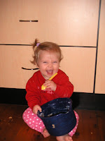I love the little sleeping bag. I think it will be harder for you to leave her at childcare for the day than for her. I hope she enjoys it too, and she looks so cute licking the bowl clean.