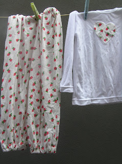 Keira is also obsessed with strawberries this week so I whipped up some pj’s for her yesterday…in stretch knit too which is a territory I rarely enter….here they are drying off after she wore some strawberries last night.