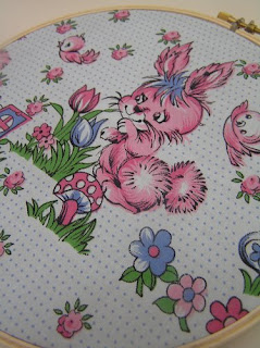day 4 and here is a cute hanging I made for keira’s room/the nursery…I have about 2m of this fabric from the 70’s found at an op shop fabric sale and when I showed my dear mother she managed to find some more at home with fluffy dogs too…..sooo cute