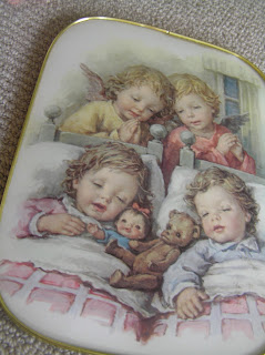 and here is a cute vintage pic for the nursery….its made in Italy and the dear little boy and girl twins have an angel watching over each of them…its in immaculate condition and was worth the crazy price I paid for it on ebay but I just had to have it and especially since they looked like little keira’s with their curls and chubby faces.