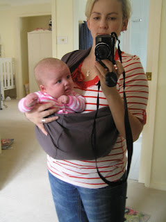 4. She looks very happy there. Yeh – you just have to do what you have to do. The girls were formula babies and rarely worn (I did the cloth nappy thing – must have been crazy), but I wear Eva everywhere – best to have 2 hands free.