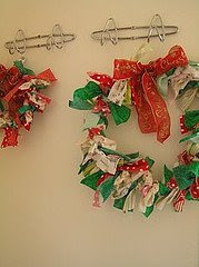 all you need is a bamboo hoop (about $2 from Spotlight or Lincraft) or you could use one of your own embroidery hoops to be extra thrifty. Just cut some fabric in festive colours into strips and tie around the hoop. Finish it off with a pretty bow and hang it up for all to see….too easy