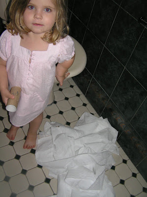 1. Oh the kids crack me up! Melody has on occassion crawled into the bathroom and did that to the toilet paper.