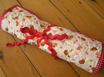 I’m sure there is a pattern to follow or a right way to do it but I just made it up as I went along, grabbing binding and ric rac as I got to that stage. There is even room for a pair of scissors at the end of the roll and you could also fit knitting needles in there too.