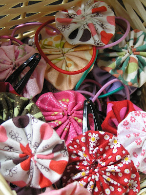 And I’ve stitched a few of my yoyos onto hair elastics as well, so quick and satisfying plus the girls love to wear them!