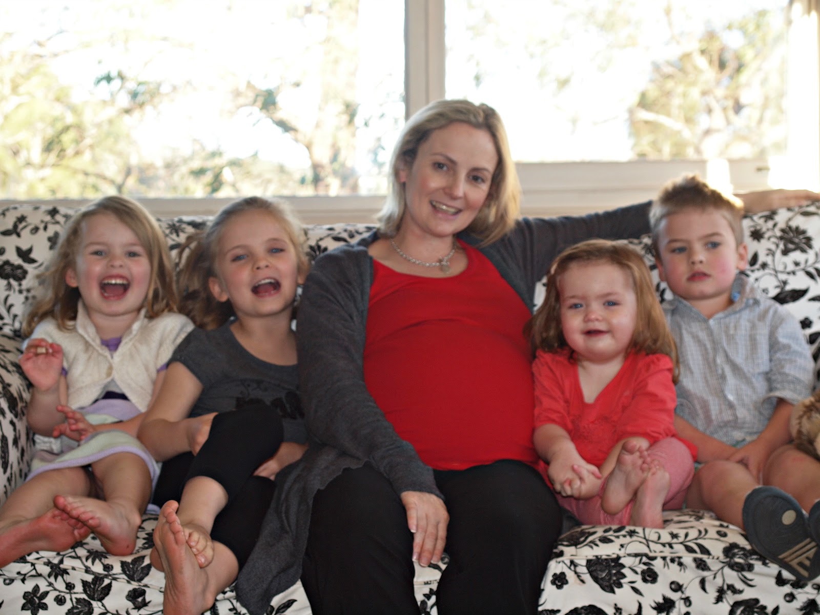 I’m so delighted to see this photo of you all, Corrie – cherishing those last days as the mum-of-four. What exciting times! J x